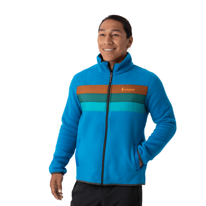 Experience the unparalleled sustainability of the Teca Fleece Jacket designed for men. Embrace eco-conscious fashion with this insulated jacket made from 100% recycled fleece and repurposed polyester taffeta featuring a water-resistant DWR finish. Stay warm and fashionable on any outing with this limited edition, vibrant jacket suitable for solo wear or layering. This environmentally-friendly garment includes elastic cuffs and hem, two hand pockets, and a style that promotes waste reduction.