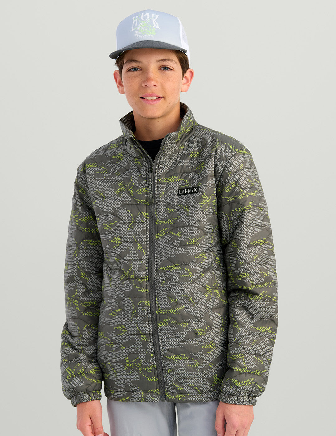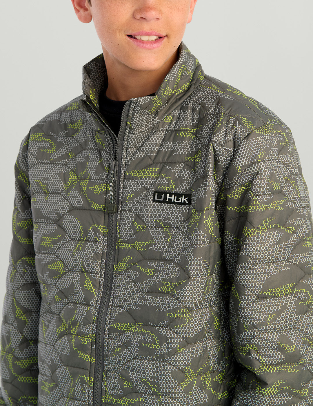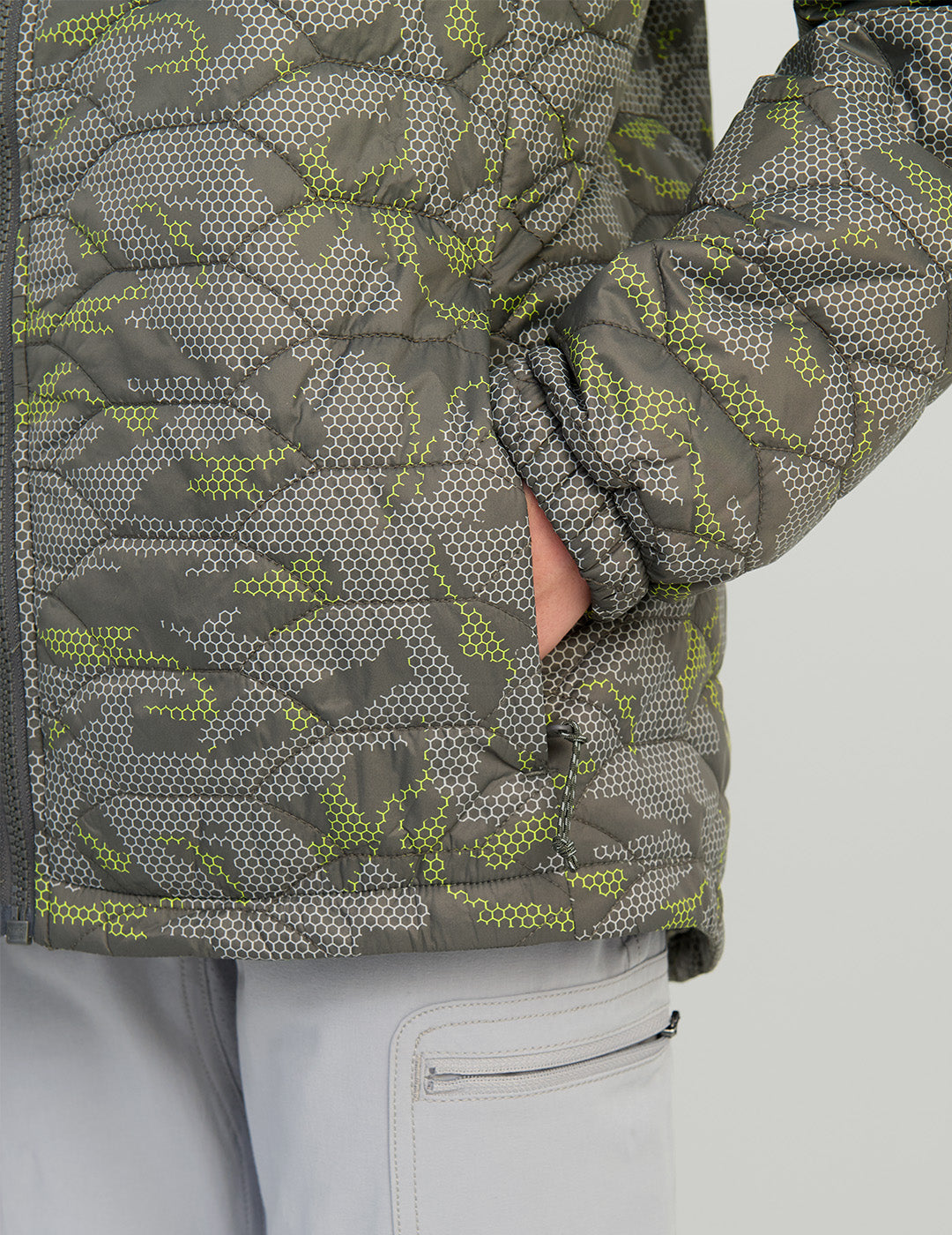 Stay warm on chilly waterfront adventures with the Kids Fish Scale Insulated Jacket in Volcanic Ash Geo Camo. This cozy jacket features soft insulation, a wind and rain-resistant outer shell, and a unique fish scale design. Perfect for young explorers, it conveniently folds into its pocket for on-the-go warmth. Ideal for fishing or boating, this jacket ensures comfort in rough weather conditions. Get this durable, versatile jacket for your child today!