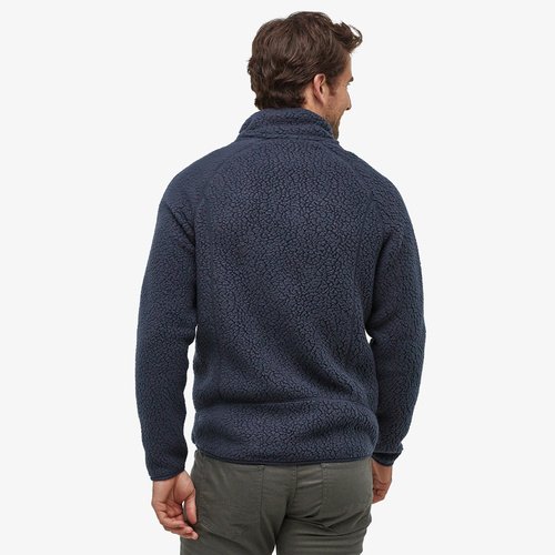 Stay cozy in this mens retro pile fleece jacket crafted from 100% recycled polyester. Experience warmth and comfort with raglan sleeves, multiple pockets, spandex trim cuffs, and flat-seam construction, ideal for outdoor adventures or casual wear. This jacket supports fair trade practices and is bluesign® approved, guaranteeing quality and sustainability.